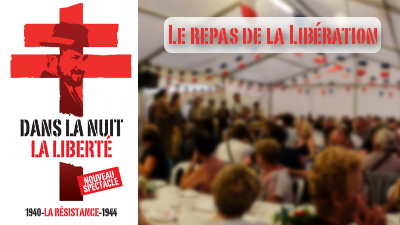 Nous vous accueillons pour le « Repas de la Libération », sous un chapiteau recouvrant un parquet de 500m² avec une capacité de 500 convives, servis à partir de 19h15. Nous vous proposons un menu de qualité, élaboré avec des produits et producteurs locaux, dans une ambiance festive d’après-guerre.